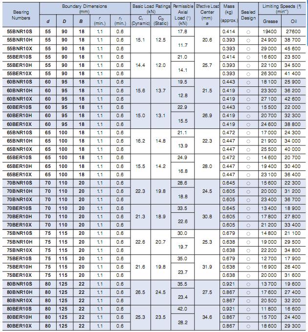 ●滾動體:鋼球(BAR10S;BTR10S)和陶瓷球(BAR10H;BTR10H)。