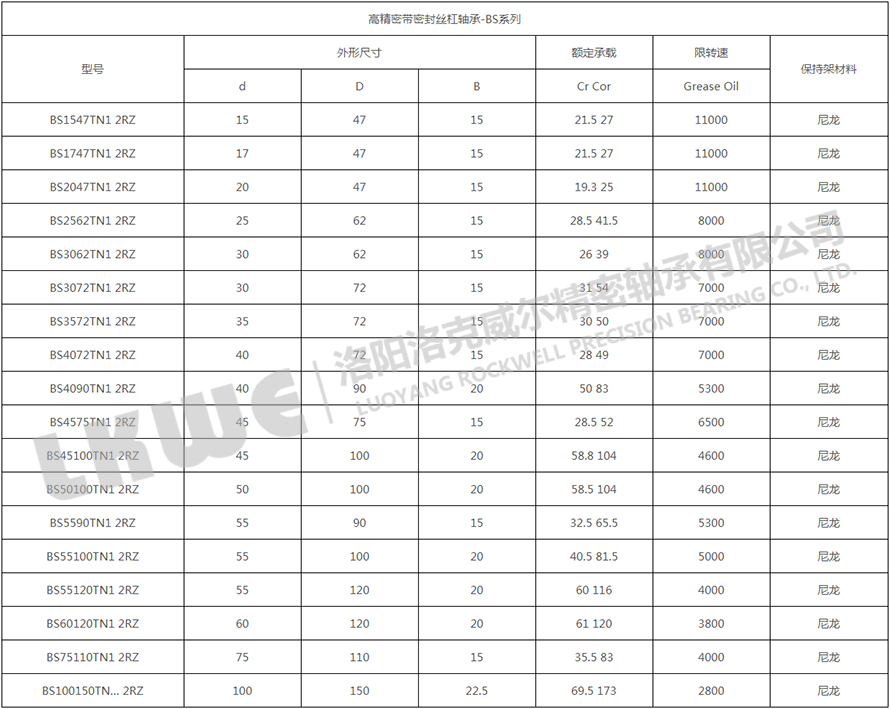 BS帶密封系列絲杠軸承主要用于需要精密軸向定位和重復定位精度等工況,例如:數(shù)控車床絲杠支撐,數(shù)控磨床絲杠支撐,自動數(shù)控軸承套圈磨床絲杠支撐,數(shù)控加工中心絲杠支撐等各類數(shù)控精密傳動機械絲杠支撐