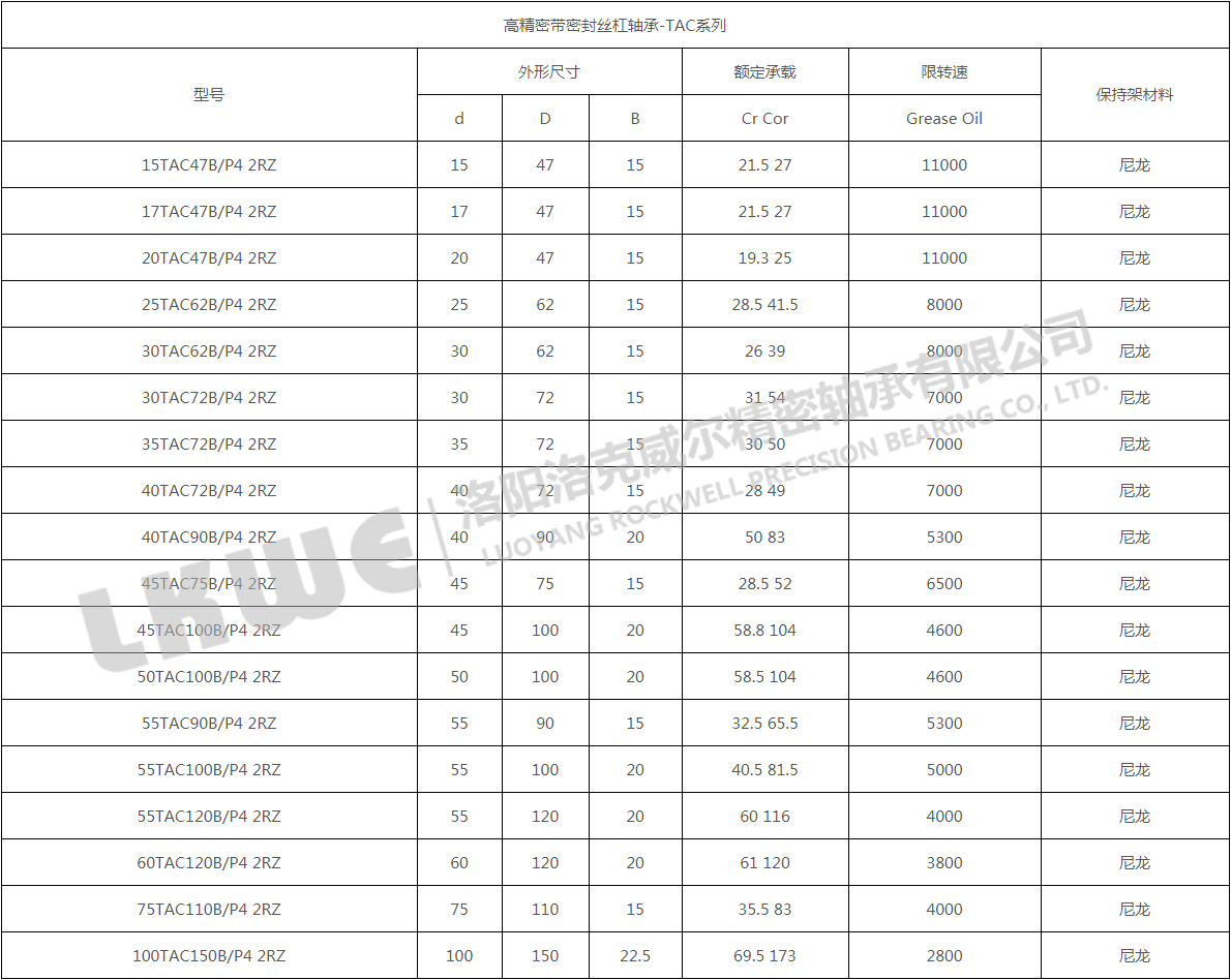 ? TAC帶密封系列絲杠軸承帶接觸式、非接觸式密封的系列產(chǎn)品